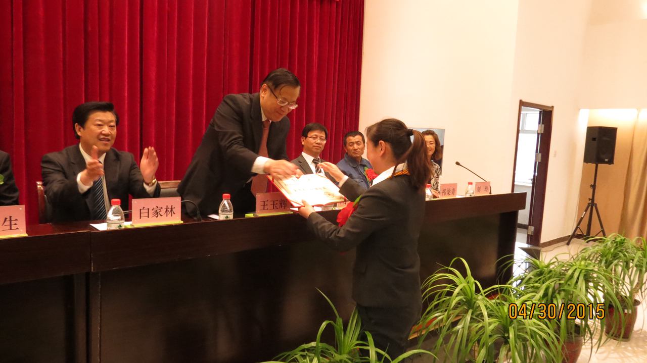 集團總經理王玉輝首先為榮獲"全國五一巾幗標兵"榮譽稱號的青海物產汽車貿易有限公司銷售總監劉少俠頒發了榮譽證書。