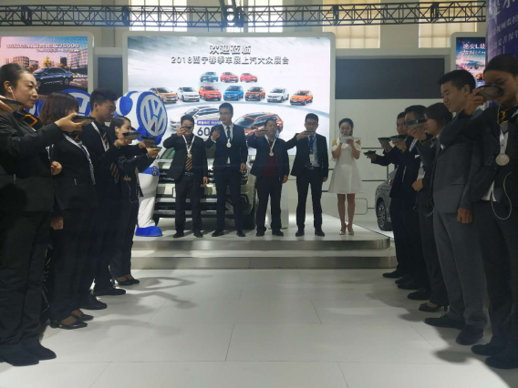 4月28日這天,清晨的陽關格外絢麗,車展也伴隨初生的旭日轟動開啟,物產汽貿職工各個精神抖擻,在分銷中心商務經理、青海地區3家上汽大眾經銷商總經理的牽頭下,車展正式開始